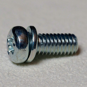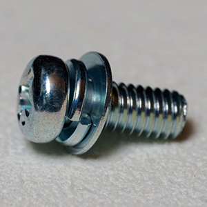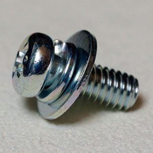 A screw has a flat washer and a spring washer pre-assembled. It is possible to prevent the sinking of the fastened materials. Additionally, you can also achieve an anti-loosening effect.P=4 2 washers, a small flat washer and a spring washer, pre-assembled